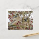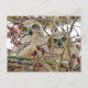 Postcard of curious baby Great horned owls playing peek-a-boo through the branches.