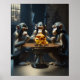 Deep in the heart of the jungle, three curious apes stumbled upon a gleaming golden human skull, a relic from a forgotten era. With furrowed brows and contemplative eyes, they gathered around this enigmatic artifact. They pondered the mysteries of existence, wondering why humans had become masters of the Earth while they remained bound to their humble existence. As they gazed upon the skull's hollow eyes, they sought lessons for their species, contemplating the power of knowledge, cooperation, and the capacity to adapt. In the quiet of their cottage, the apes began to glimpse the secrets of evolution, sowing the seeds of understanding.