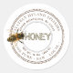 Design features a realistic honeybee just on the edge of the sticker, as if she's wandering over to investigate. Personalize with your business name, address, honey net weight and honey description. White background with dotted border. Common honey net weight conversions: 8oz (227g), 12oz (340g), 16oz (454g), 32oz (907g), 5lb (2.27kg).