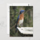 Postcard design features a photograph of a male Eastern Bluebird on top of his nest box.