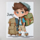 A curious and imaginative comic boy who loves learning and discovery. With bright eyes, he is dressed comfortably and ready to explore the world. Carrying a backpack filled with books, he is ready for adventures and exploration. Personalize it with your own text or remove it.