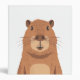 A charming illustration of a capybara looking straight ahead with a calm and gentle expression. The image captures the capybara’s unique features, including its round face, expressive eyes, and distinctive whiskers. The minimalist style and earthy tones add to its endearing appearance, making it an appealing visual for animal lovers.