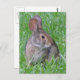 Postcard design features a photograph of a Cottontail Rabbit in the grass.