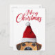 Curious Cute Funny Dog with Santa Hat Holiday Postcard