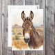 Send a touch of desert charm with this watercolor donkey design. Featuring a curious donkey against a Southwestern landscape of mesas and warm earthy tones, it blends rustic character with soft artistic detail for a scene full of personality.