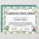 Celebrate the achievements of your young adventurers with the "End Of Year Curious Explorer Student Recognition Award." This beautifully designed certificate honors students who have shown exceptional curiosity and a passion for discovery throughout the school year. Perfect for teachers and parents looking to recognize and inspire the next generation of inquisitive minds. Durable and stylish, it's a keepsake they will cherish forever.