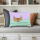 Curious Ginger Peekaboo Cat Funny Lavender Green Accent Pillow