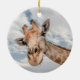 Ceramic decorative ornament with an image of a very curious and funny giraffe on both sides.