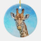 Curious Giraffe with Blue Confetti Sky Ceramic Ornament
