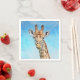 This curious giraffe has stretched its long neck to peek at you, bringing playful charm and gentle joy to your day. Set against a bright blue sky background filled with falling blue paper confetti, this artwork celebrates the giraffe's unique presence in a fun and whimsical way. Whether you imagine spotting this graceful giant on a safari in the African Savannah or at a local zoo, this gentle creature captures the wonder and beauty of the natural world.