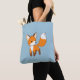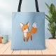 Curious Little Fox Blue Tote Bag