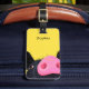 A playful and colorful illustration of a curious pig peeking into the frame, with a bright yellow background that adds cheer and warmth. The close-up of the pink snout and expressive eye gives the artwork a humorous and charming touch, perfect for animal lovers and fans of fun, modern illustrations.