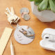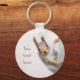 Closeup front view of a squirel on a tree trunk, looking straight at you. Funny and curious animal. Squirrel symbolises practicality, the necessity to make pleriminary provisions. Keychain. You can change or delete the image and the template text.