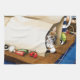A playful tabby cat peeks out from inside a paper grocery bag, surrounded by fresh vegetables on a cozy blue kitchen counter. With bright eyes and a mischievous charm, this adorable illustration captures that irresistible feline curiosity we all know and love. Perfect for cat lovers, kitchen décor, and anyone who appreciates a little humor with their groceries, this design brings warmth, whimsy, and personality.
