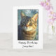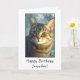 Curious Tabby Cat Portrait Happy Birthday Name Card