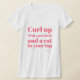 The material is a great quality that is hard to find with most tee shirts. Fabric was not see-through or thin at all, but was also very soft and comfortable. The shirt description states that it runs a little small, so I sized up one size for a perfect fit! I would definitely buy this type of tee shirt again because I love the fit and high quality fabric that I cannot find anywhere else. The printing was perfect and just as pictured. Loved the cute quote and really enjoy the tee in both the quality and design. I love quirky typography designs and funny quotes and I am extremely pleased with the overall quality and value I get at Zazzle!