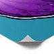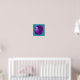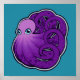 A purple octopus with dark purple spots and pretty bright blue eyes and tentacles curling into spirals on a bright teal cyan blue background. Original ink drawing with clean graphic lines by Alicia Marie.
