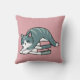 Curled Up with a Book and a Cat - Cozy Cat Reading Throw Pillow