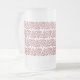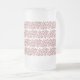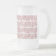 Frosted 16 oz mug with repeated red curleque Christmas tree pattern.