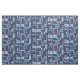 Fabric featuring a pattern of curling terms in shades of red, white and grey on blue background. Perfect for curlers and curling fans.