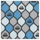 Fabric featuring an ogee tile pattern with curling rocks in shades of blue and grey on black background. Perfect for curlers and curling fans.