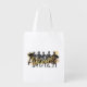 I own a lot of reusable grocery bags, but this one holds its box shape and simply stands up on its own even if there is nothing in it. Its stiffer than your regular reusable bag too, and the material is water resistant. I poured water on the exterior and it didn't penetrate inside to the other side. I'm buying a couple more. Wish I knew how durable these bags were or I would have purchased a few more with my initial order. I also like how it folds and buttons up when not in use, making it easy to put into a handbag or luggage. I haven't used this bag yet, as I purchased it for travel use, like when you're at the airport and need to small sturdy bag to place any airport purchases in, like food, souvenirs etc. I can tell you when you first see this bag, it looks very cheap, but after closer inspection of the material and the seams its a very sturdy reusable bag. I tested it out by putting some really heavy objects inside and I could not observe any stress to the bag at all. Another thing I like about it, is the fact the medium size that this is makes it easy to just carry it in your hand without the bottom of the bag scraping the ground, like most other bags do when you're short. That alone, deserves 5 stars. I just wish there were more colors to choose from! The PDX Airport Carpet printing looks just like the photo, and using this bag during travel might be a conversation piece when/if a native from Oregon happens to see it.