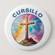 Cursillo Wood Cross With Rainbow and Clouds Button