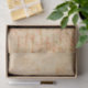 Cursive Script and Filigree on Tan Decoupage Tissue Paper