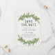 This curved branches greenery save the date card is perfect for a modern wedding. The artsy design features two abstract watercolor greenery branches arranged to compose a rustic leafy wreath.