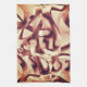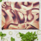 Curved brownish red or burgundy shapes, beige tone kitchen towel