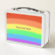 Pretty rainbow blends, with a slight curve, with a placeholder for your text, is printed on custom metal lunch boxes. The text box is centered on the yellow and is written in purple. The design is printed on both sides. Thank you for shopping at CherylsArt on Zazzle.