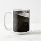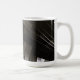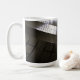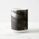 Monochrome architectural abstract of curved steel panels and grid highlights—sleek, reflective lines on a wraparound ceramic mug.