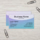 A business card template with a semi-transparent curved header area for the company name and business type etc, with name, job title and other contact details in the section below. The Background and header panel are repeated on the reverse side and can be further customized.