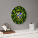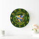 Brighten up your wall with this Cusack Irish shield wall clock. Done in Irish green and gold to go in the family room, game room or kitchen! Erin go Bragh!