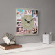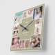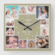 Custom 12 Family Photo Collage Quote Sage Green Square Wall Clock