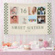 Create your own custom photo collage banner for a 16th Birthday Party. The template is set up for you to add your custom name, age and your favorite photos. Your photos will automatically appear as a photo collage. The banner has a sage green boho style arch and a modern retro checkerboard in cute sage green and cream. The birthday banner is complete with "Sweet Sixteen" and the age 16 lettered in cute script calligraphy typography.