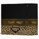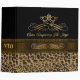 Lovely all purpose Avery binder, with a brown and black spotted leopard pattern, on the bottom and a solid black, on top. Graphics of a pretty brown satin looking ribbon runs across the middle of the binder and has a gold tone floral flourish, in the middle of the ribbon. Customized for your needs by me.
