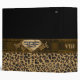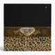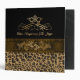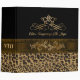 Lovely all purpose Avery binder, with a brown and black spotted leopard pattern, on the bottom and a solid black, on top. Graphics of a pretty brown satin looking ribbon runs across the middle of the binder and has a gold tone floral flourish, in the middle of the ribbon. Customized for your needs by me.