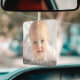 “Love.” A fun, playful visual of white script handwriting and cute, playful hearts against the photos of your choice, helps your car smell as sweet as the loved ones in your photos. Spread love and joy whenever you drive around town with this stylish and modern, personalized car air freshener. Custom double-sided, so you can personalize with two different photos. Proudly display this in your car!