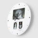 Create a timeless keepsake with this personalized wedding photo wall clock. This elegant design includes three photo placeholders one large photo of the couple together and two smaller images for the bride and groom individually. Add the couple’s names or custom text to make it uniquely theirs.