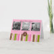 Show off your little princess with three different photos. You can even add her name, weight, and initials. The 3 Picture photo birth announcement is the perfect way to show off your little one from three different angles. Just choose three of your favorite photos, get them down to size, and insert them in this stylish frame. The frame coloring goes nicley with the babies gender and the striped accents add some flair. Don't forget to finish it all off with a little text including the intial of either the baby's first or last name. This card is also good for multiples.