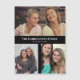 Lovely arrangement of four family photos collage divided in 3 sections with a landscape horizontal black rectangle frame on the top side and two portrait vertical rectangle frames on the right side with a texts on the lower side. Personalize it with your own photos and texts. Perfect a custom made gift for your loved ones.