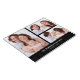 Lovely arrangement of four family photos collage divided in 3 sections with portrait rectangle frame on the left and two landscape black rectangle frames on the right side with a texts on the lower side. Personalise it with your own photos and texts. Perfect a custom made gift for your loved ones.