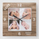 Custom 4 Photo Collage Family Name Love Wood Square Wall Clock
