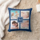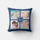 Custom 4 Photo Collage Monogram Blue Throw Pillow
