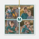 Create your own photo collage with 4 images in a square grid each with thin blue-green borders on a white background. A white circle with a teal border overlaps the corners of the photos in the center and features your monogram in a bold teal font. Add your initial and photographs in the sidebar to personalize it. Makes a great custom Christmas gift.
