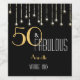 Custom 50 & Fabulous Black Gold Lights Elegant Wine Label