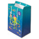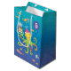 Blue, Turquoise and a green Octopus with colorful fish holds a three layered cake on his tentacle.Customize the age on this Gift Bag for your favorite sea urchin's birthday .
