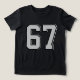 A cute kids t-shirt with a custom 67 number design, personalized for birthdays or school.