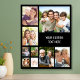 A custom photo collage black wall photo tile featuring 9 photos of family, pets, memories, events, your photography, etc. and one or two lines of text in simple white typography. The colors of the background and text can be changed by editing in the design tool.
